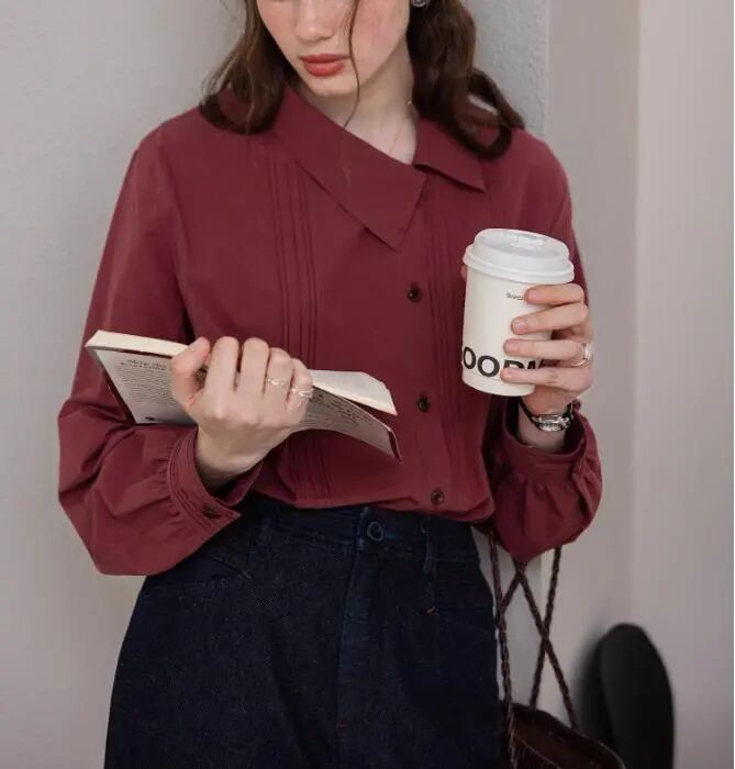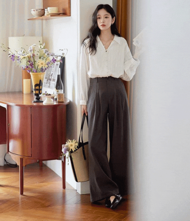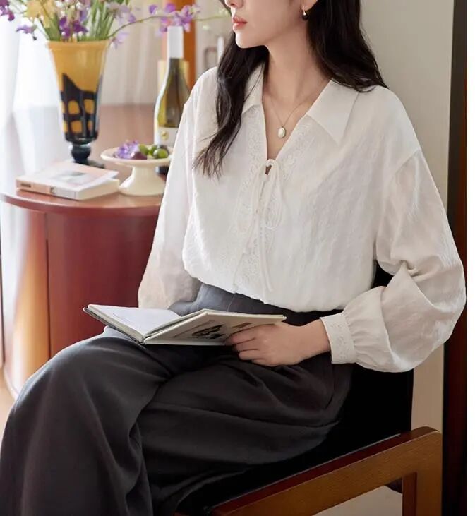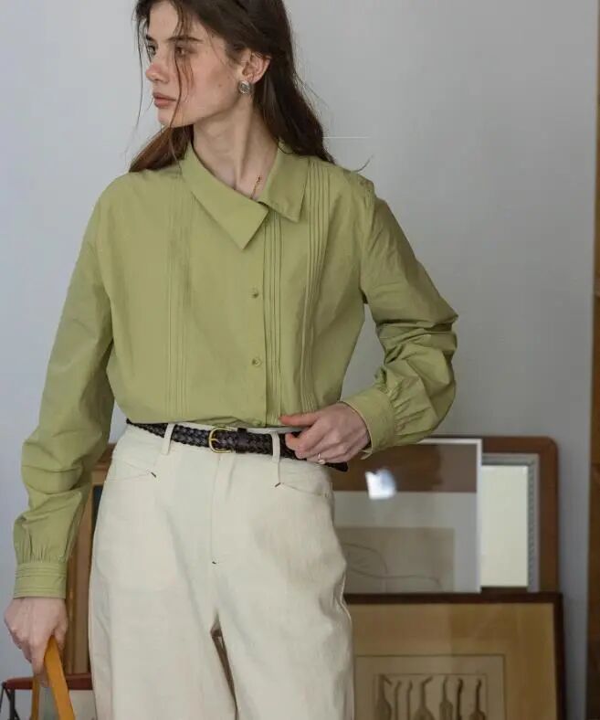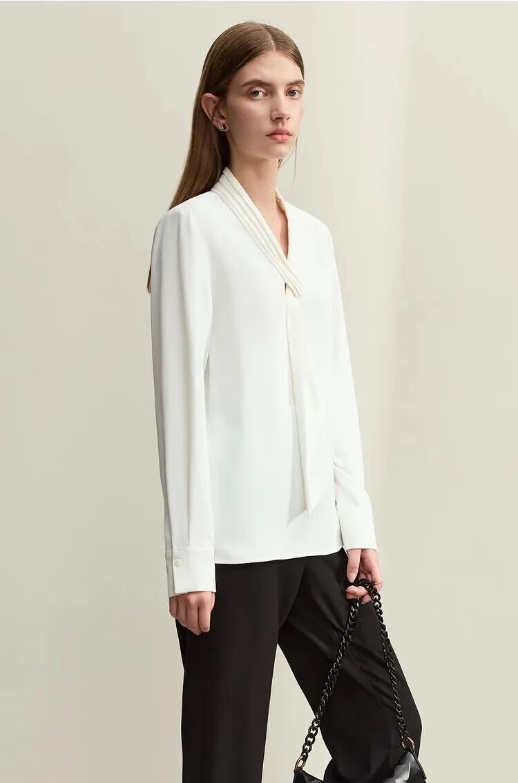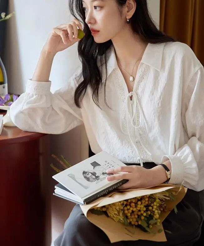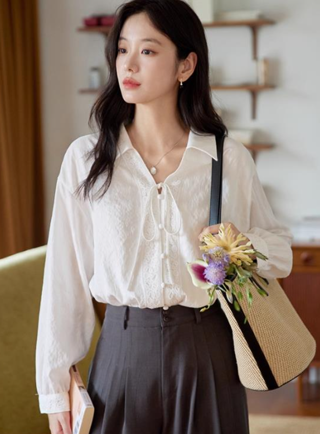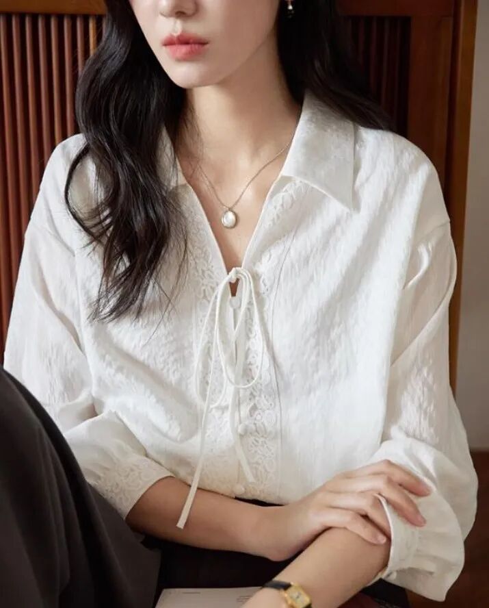 缎面雪纺衬衫收受的则是优质的仿真丝面料,一穿上就有「轻熟、尺度、和睦」的氛围感。