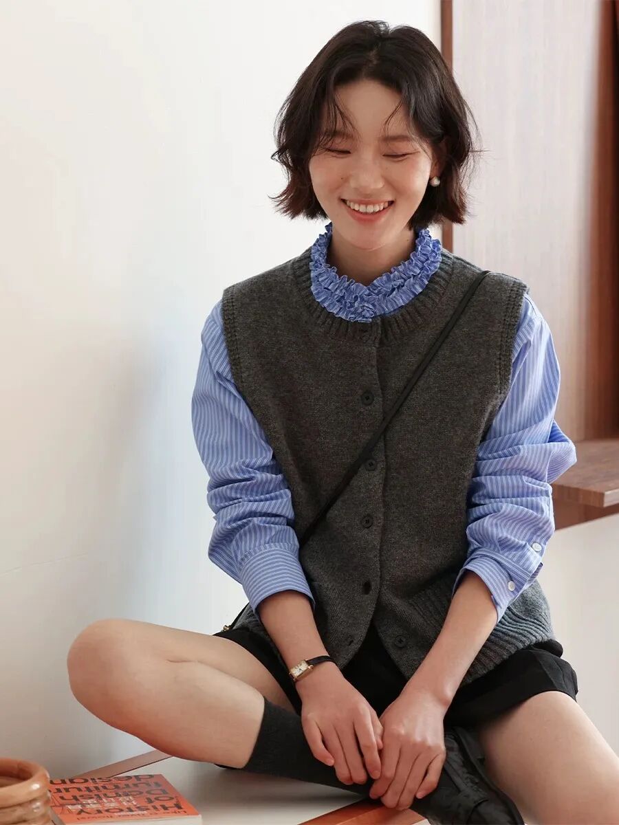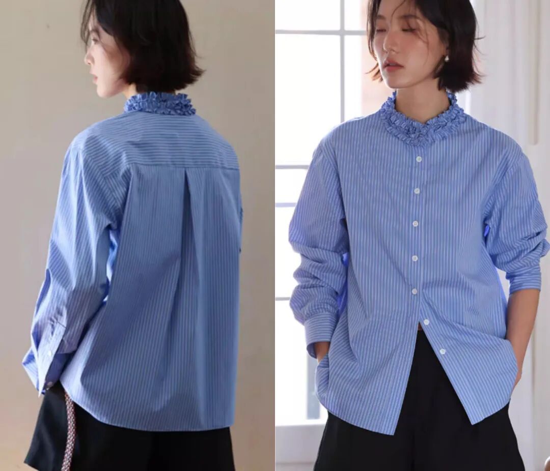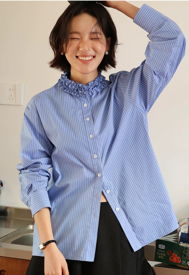 谋划师有点戒备计地使用了小面积木耳边,弱化穿搭的凌厉感,让这件衬衫能和尺度慵懒、日系森系、考中和睦等气派完好和会。