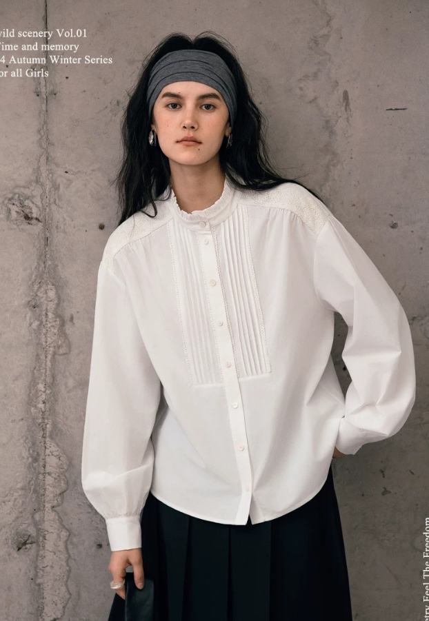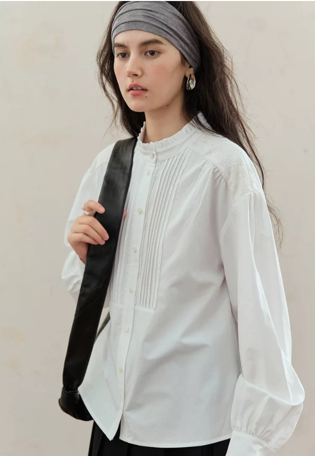 花式三 风琴褶长袖花边领尺度气质衬衫