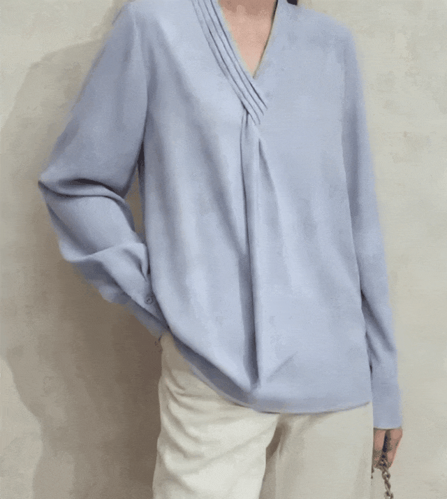 风琴褶点缀门襟,视觉拉伸颈部线条,显脸小。