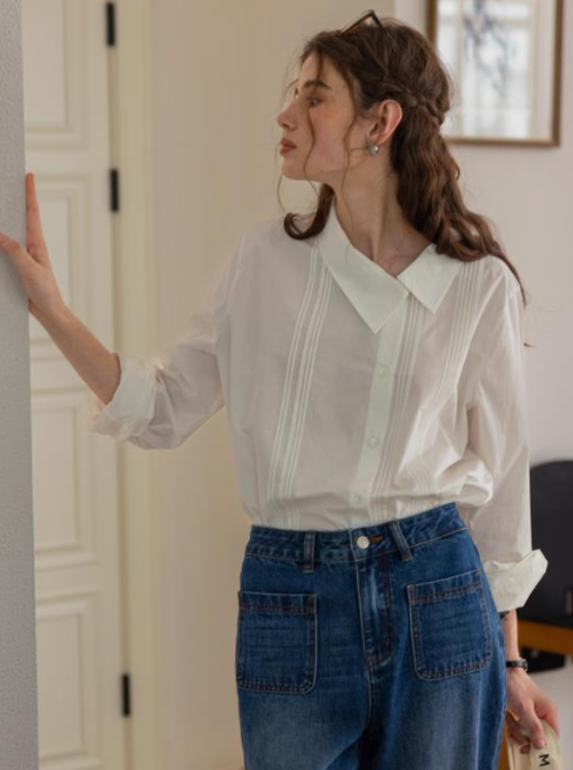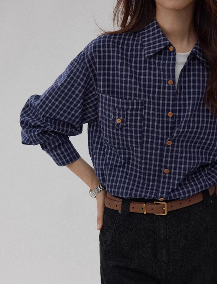棉类的衬衫自带蹧蹋感 ,给东谈主一种慵懒平缓的沉静感。