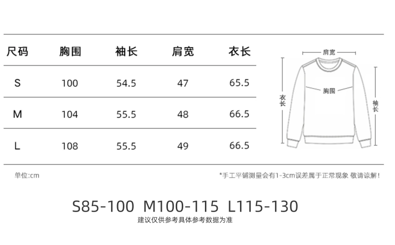 65棉面料亲肤,穿上平缓如风。S-L,3个尺码,85-130斤齐能穿。