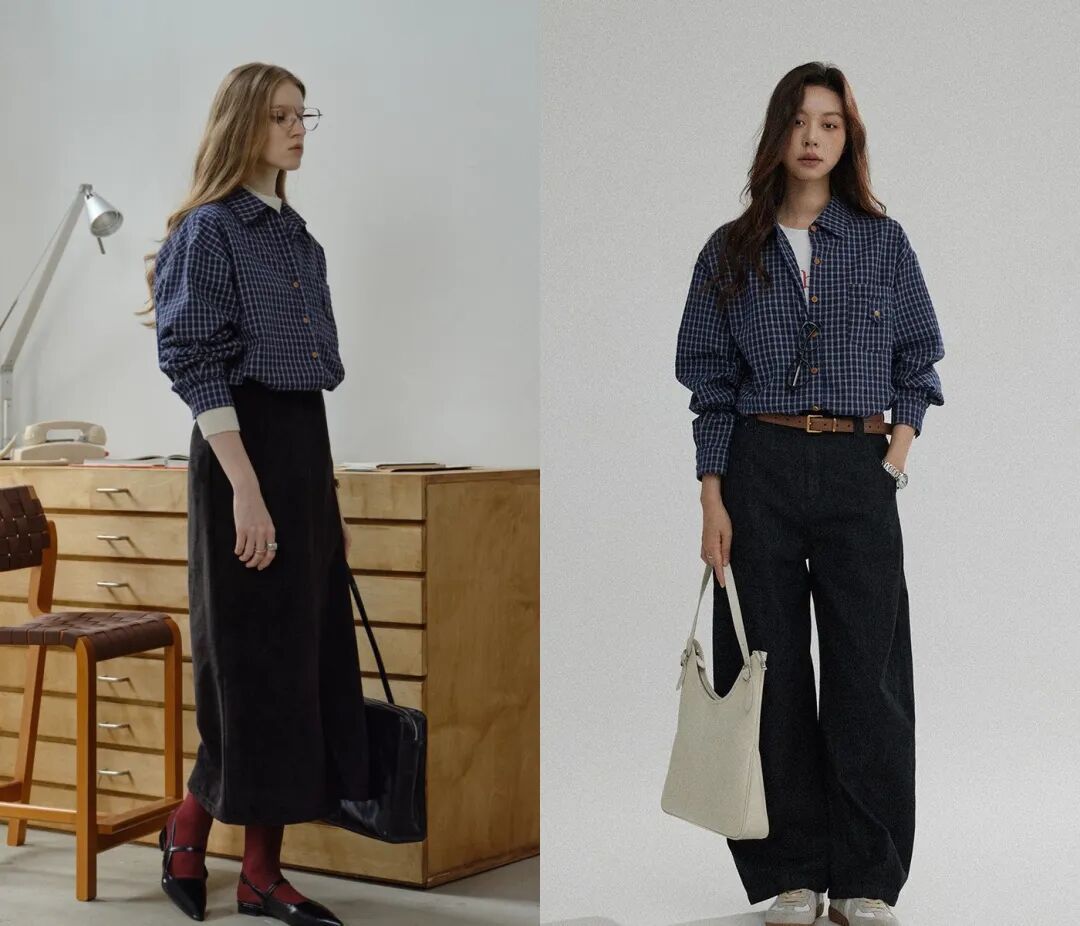 有符合通勤的优雅缎面衬衣,有纵欲马虎的尺度款,还有相沿清冷的格子衬衫……