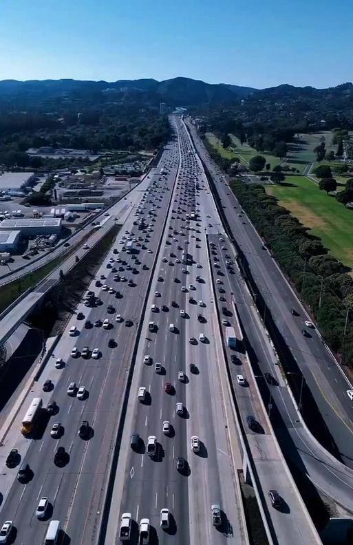 普遍条像巨型怪兽一样盘踞在城市上空的高速,比如I-10、I-5、I-405、US-101……它们的名字你可能记不住,但你每天都要在上头堵一两个小时。