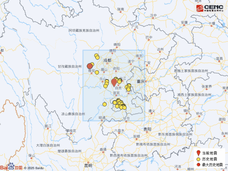 历史地震:凭证中国地震台网速报目次,震中相近200公里内近5年来发生3级以上地震共193次,最地面震是2022年6月1日在四川雅安市芦山县发生的6.1级地震(距离本次震中189公里),按震级大小前50次历史地震散播如图。