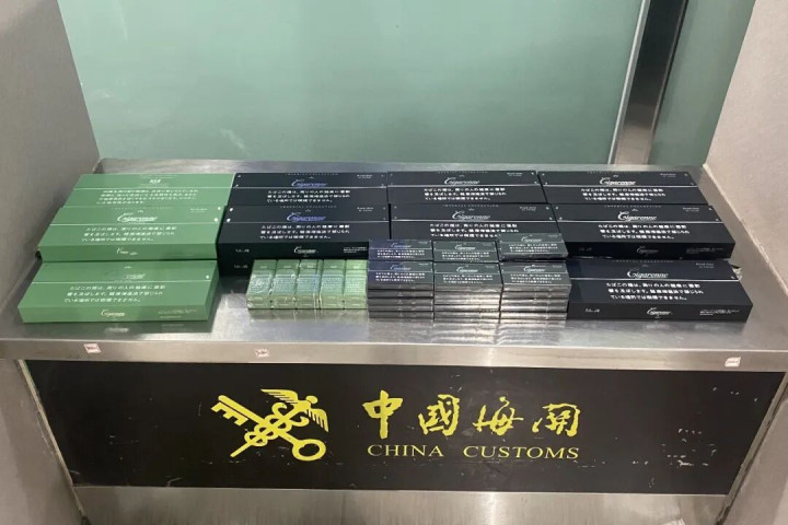 3月1日,辽宁大连周水子机场海关在进境旅检渠谈查获游客违纪捎带香烟成品24条。