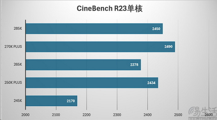 这少量,在CineBench R23的渲染测试中也得到了讲解。尽管峰值主频略低,但270K Plus依然凭借举座更大的里面带宽,在重浮点负载场景跑赢了285K,虽然也大幅当先于265K。同期250K Plus的多核性能更是当先245K达到了30%把握,性价比的栽植可谓相等恐怖。