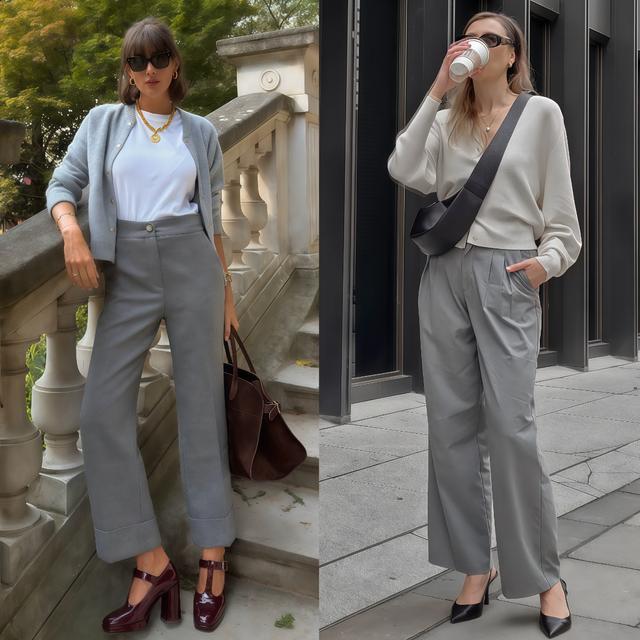 雷同一条阔腿裤,上头换一件短到腰线的外衣,跟配一件盖到大腿的中长外衣,穿出来完全是两个情状。