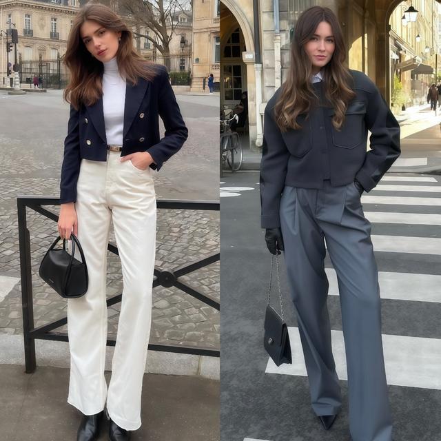“短外衣+阔腿裤”这个组合不复杂,外衣短到腰线近邻,裤子宽到能藏住腿型,配色浅深拉开,鞋子选轻巧款,穿上身等于一个利落显高的好情状。