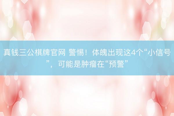 真钱三公棋牌官网 警惕!体魄出现这4个“小信号”,可能是肿瘤在“预警”