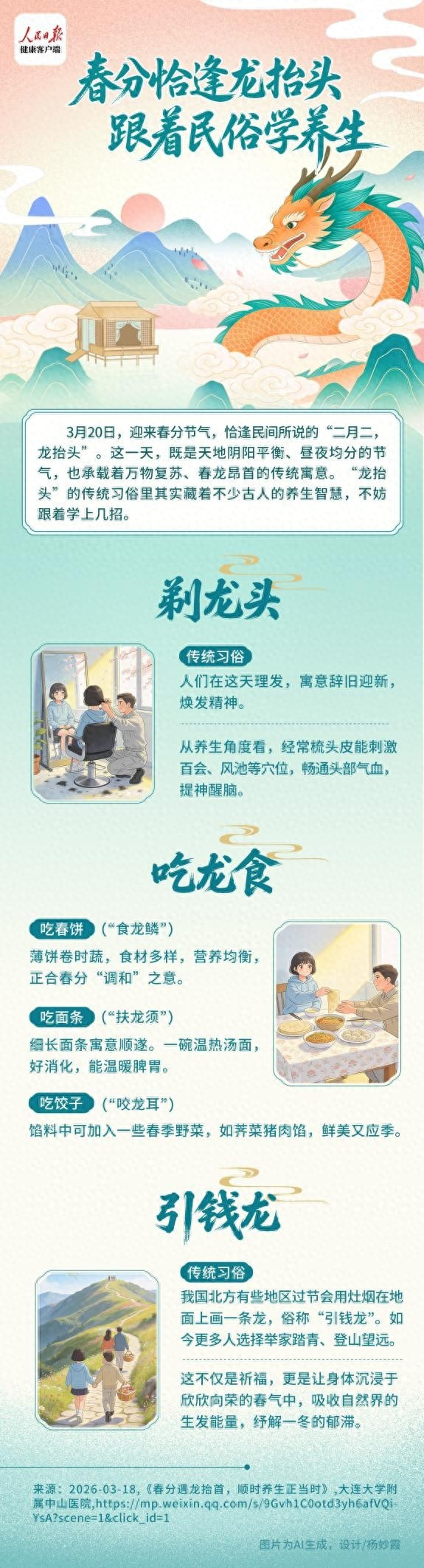 当天春分,恰逢农历二月初二“龙昂首”,日夜均而寒暑平,春龙昂首万物生。在这贫窭一遇的“双喜”日子里,迂腐民风不仅藏着好兆头,真钱三公棋牌官网更赋存着顺时养生的贤人。是剃个“龙头”兴奋精神,依然吃口“龙鳞”平衡养分?快追随这份相等养生指南,把传统习俗里的健康密码带回家,悉数昂首迎春,开启一年好运谈!