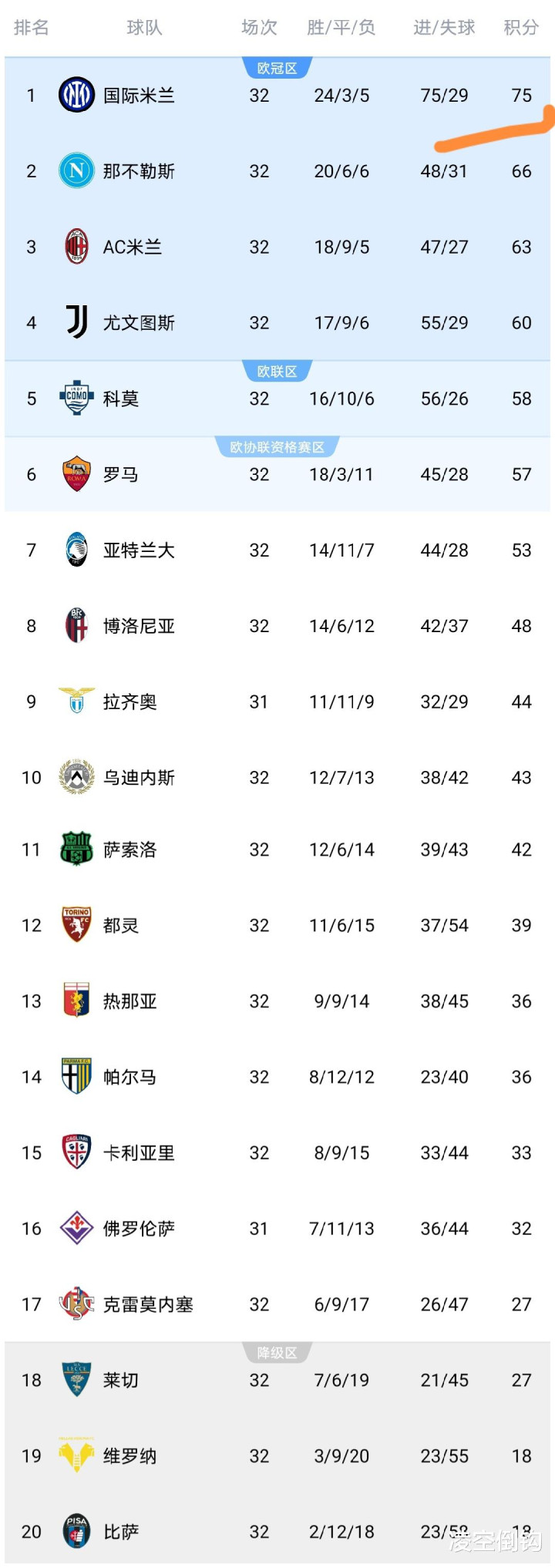 不错看到博洛尼亚赢球之后,积分飞腾到了48分名按序8,而莱切积分停留在了27分名按序18,而国米积分飞腾到了75分持续名按序一,科莫积分停留在了58分无缘反超尤文。那不勒斯积分飞腾到了66分名按序2,热那亚积分飞腾到了36分名按序13。