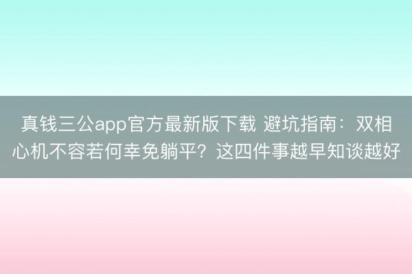 真钱三公app官方最新版下载 避坑指南:双相心机不容若何幸免躺平?这四件事越早知谈越好