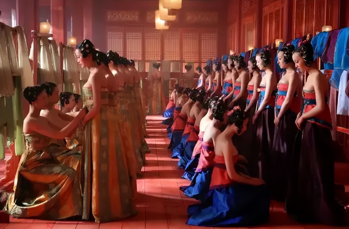 影片「俗艳」的视觉格调恰是开荒在这些诬蔑之极、暗澹之极的东说念主物相关、东说念主物内心之上。王无为穿的黄金甲,既是王权的化身,又是怯生生权益丧失的象征。皇宫极点蹧跶之老套、之炫主义颜色,是王极点认可、爱护、不吝一切代价渴求的空前绝后皇权的物资化效果。宫女杰出的清翠胸部在影片举座的戏剧架构中相似不错视作父权-儒家系统诬蔑守望的展现。
