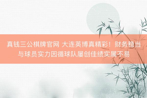 真钱三公棋牌官网 大连英博真精彩!财务稳当与球员实力因循球队屡创佳绩实属不易