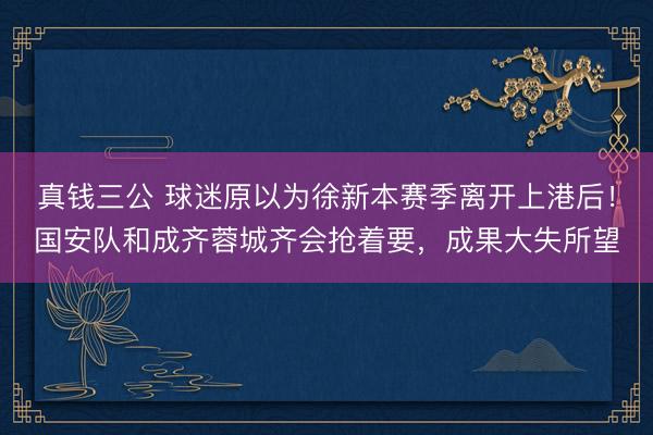 真钱三公 球迷原以为徐新本赛季离开上港后!国安队和成齐蓉城齐会抢着要,成果大失所望