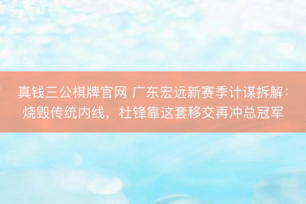 真钱三公棋牌官网 广东宏远新赛季计谋拆解:烧毁传统内线,杜锋靠这套移交再冲总冠军