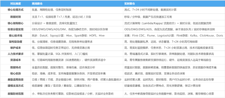 看预算和资源。 及时数仓的资源资本和东谈主力资本皆高于离线数仓。预算有限的情况下,把离线数仓作念塌实,比什么皆紧迫。