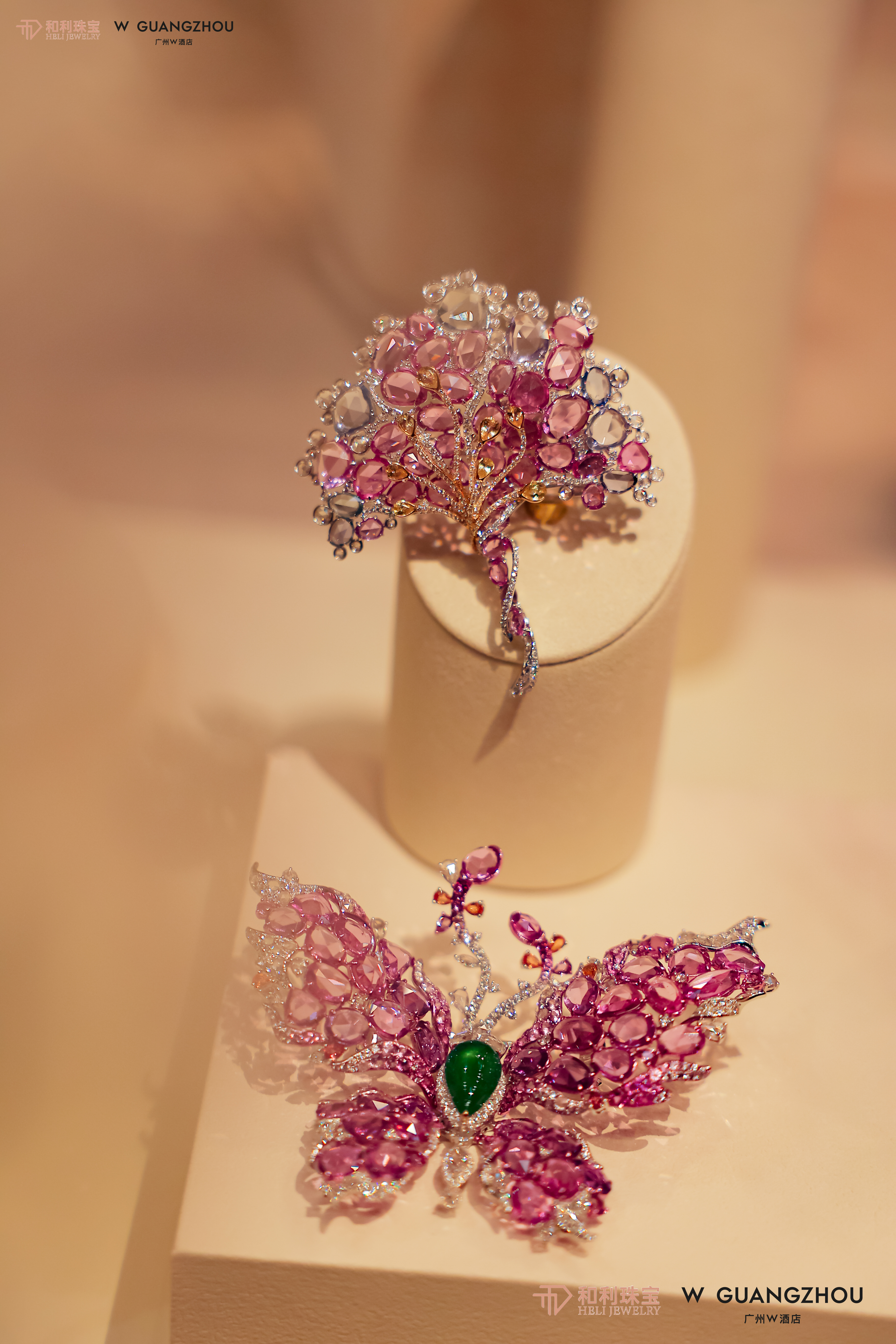 行为现场,来宾们品鉴了多件和利珠宝带来的高等彩色对峙作品,从浓郁的红对峙到宽敞的蓝对峙,再到灵动的祖母绿与帕帕拉恰,每一件齐展现了彩色对峙的极致魔力。搭配W酒店全心定制的主题下昼茶,珠宝的妍丽与甜点的空洞是曲分明,营造出视觉与味觉的双重享受。