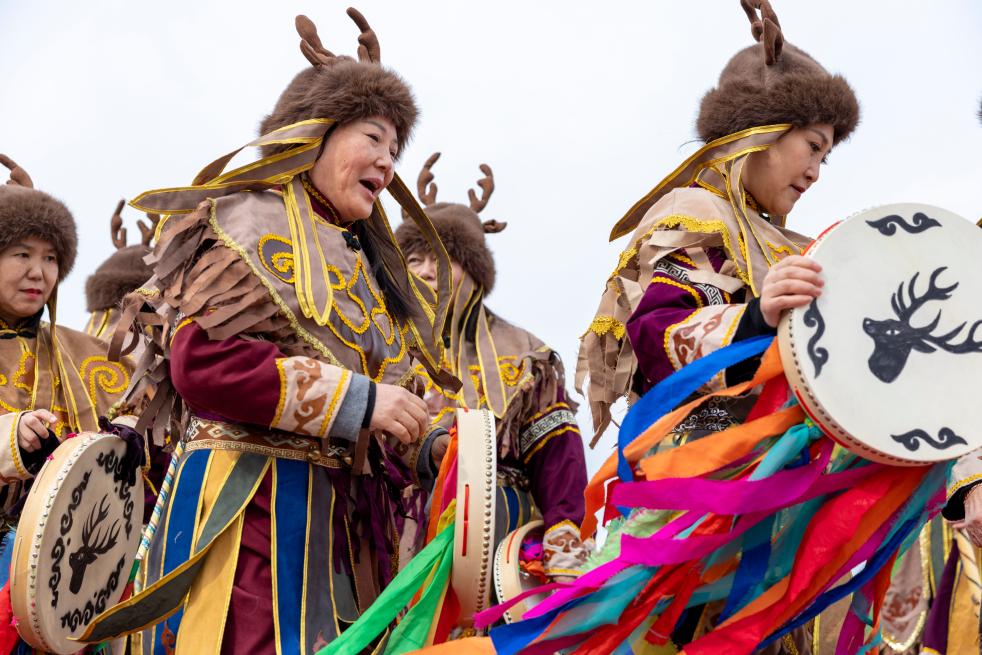 上昼9时,开江祝贺庆典依期献艺,凤凰彩票(welcome)APP官网下载25位赫哲东谈主身着传统衣饰,踏着《温吉尼》的陈腐韵律,手抓萨满饱读,用千里稳有劲的饱读点,将渔猎文化的专有魔力展现得大书特书。
