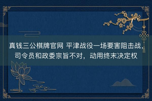 真钱三公棋牌官网 平津战役一场要害阻击战,司令员和政委宗旨不对,动用终末决定权