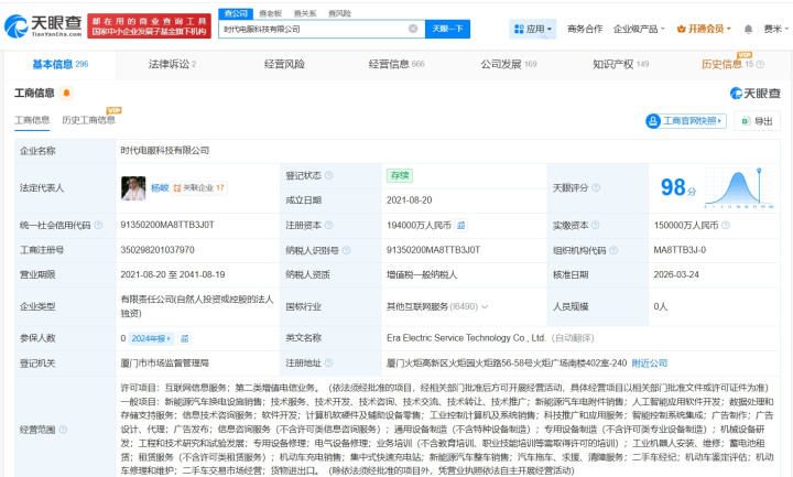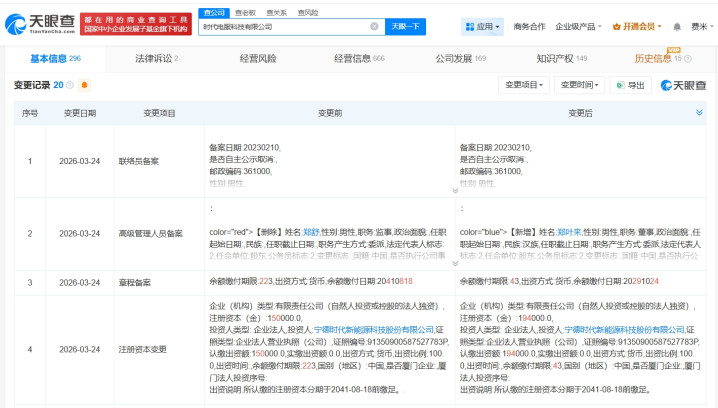 真钱三公 宁德时期旗下时期电服科技公司增资至19.4亿元