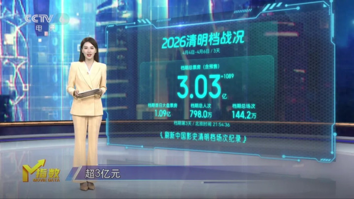 1905电影网专稿大盘数据明白,在以前的一周里,宇宙院线放映总场次达278万场,周票房3.59亿元,不雅影东谈主次约933万东谈主次。本届晴明档合座报收超3亿元。